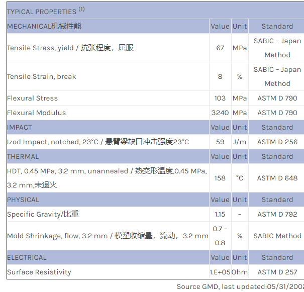 应用范围:产品描述NORYL GTX 120EM2S物性表